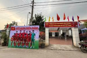 门外,村里的年轻人们挂起横幅,上面写着:"共同为屈文康和越南U23队加油"。50岁的屈文康母亲表示,已准备了100公斤瓜子、糖果饼干,并煮好了茶,免费招待街坊邻居。”
