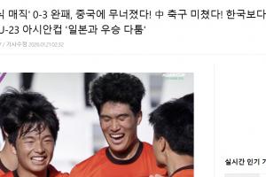 韩媒新闻标题:金相植的魔力在0-3负于中国的比赛中崩塌!中国足球太疯狂了!他们踢得比韩国还好……中国队5场0失球,与日本争夺冠军。