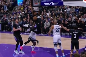 见红了!努尔基奇抢篮板被扫到脸部 眉角被打开鲜血直流