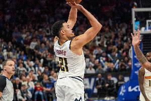 首节比赛,掘金球员斯潘塞·琼斯进攻端手感爆炸,外线一球不丢,他出战10分钟,三分4中4砍下12分2篮板,正负值+13。