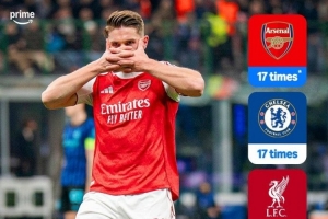阿森纳17次进入欧冠16强,与切尔西并列英格兰球队第一