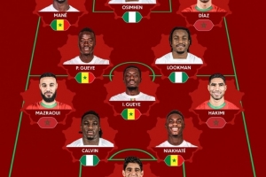 非洲杯官方最佳阵:马内领衔,迪亚斯、奥斯梅恩、阿什拉夫在列