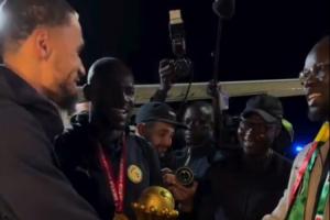 当天时间周二下午,塞内加尔在夺冠游行结束后得到了两位政要的接见,并排队握手。当轮到塞内加尔二门迪乌夫时,一旁的塞内加尔总理松科打趣道:“毛巾呢?毛巾在哪里?”迪乌夫和库利巴利都不禁大笑起来。