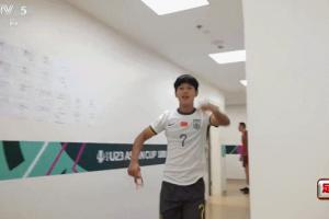 siu×2!赛后向余望进更衣室前再次siu庆祝,队友唱向余望之歌