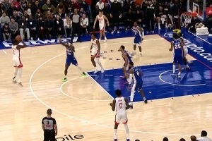 有点残暴!卡马拉掩护后顺下接球 转身单臂暴力隔扣哈克斯!