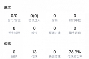 李镇全全场数据:首发出战62分钟,丢失球权8次,传球成功率76.9%
