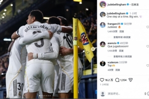 先赛积分升至榜首,贝林厄姆社媒晒庆祝照:一步一个脚印!