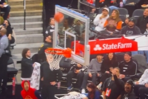 进球有效!马刺球迷半场超远打计时器弹进篮筐 成功带走1万美元