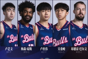 香港金牛队今日首发阵容: 卢艺文 琼斯 卢杜伟 吴委峻 巴尔文