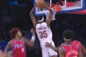 追回来了!汤普林切入接泰森妙传双手砸扣2+1
