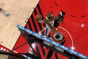 内线真空!艾顿&海斯齐缺阵 湖人篮板27-42净负开拓者15个
