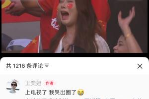 终场哨响,U23国足点球大战历史性闯入四强,转播镜头给到场边一位喜极而泣的女球迷。