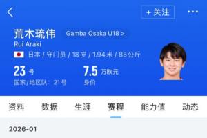 昨日日本队获胜后,我关注了日本国脚荒木琉伟。