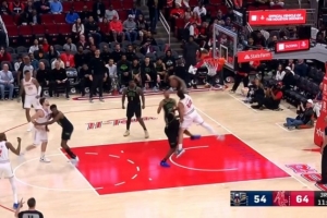黄雀在后!詹姆斯奋力追防 高高跃起送阿巴基钉板大帽
