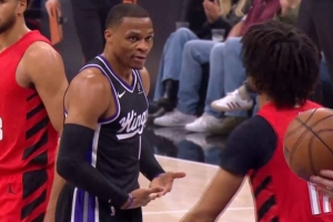 状态真好!威少顶着防守强投打进加罚 再现摇娃娃庆祝