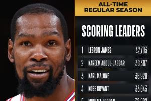 美媒:如果杜兰特跟腱没有受伤 那他现在将会是得分榜前三