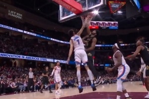 摧枯拉朽!贾勒特·阿伦拼下前场篮板 起飞暴力隔扣霍姆格伦