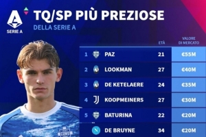 意甲前腰、二前锋身价排行:尼科-帕斯居首,德布劳内并列第五