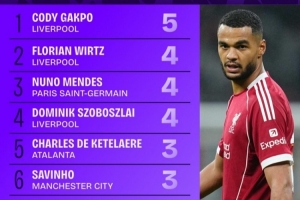 24直播网讯 欧冠联赛阶段三轮战罢,Squawka统计了创造绝佳机会榜单。利物浦前锋加克波以5次机会领跑,维尔茨、门德斯和索博斯洛伊以4次并列第二,多位球员以3次机会位居其后。