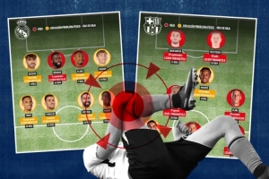 24直播网讯 皇马与巴萨即将展开国家德比,两队却遭遇严重伤病潮。据《马卡报》统计,共16名球员受困,8人确定缺阵。专家警告多名球员如阿诺德、拉菲尼亚等存在高复发风险。主帅阿隆索与弗里克正谨慎排兵,以避免在关键战中雪上加霜。