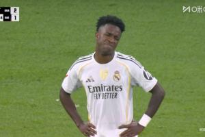比赛第72分钟,维尼修斯被换下,球员对此感到不满,情绪失控,走向替补席时一路上喋喋不休,没有和主教练阿隆索击掌,径直回到更衣室,不过6分钟后的转播镜头显示,球员已回到替补席座位上。