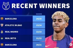 24直播网讯 《转会市场》统计显示,近10年国王杯冠军中,巴塞罗那以5次夺冠位居榜首。皇家马德里和皇家社会等队也曾问鼎,展现了西班牙足坛的激烈竞争。