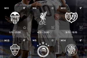 24直播网讯 皇马官方公布11月赛程。球队首战主场对阵瓦伦西亚,随后将迎来包括欧冠客场挑战利物浦在内的五连客之旅,赛程密集且挑战巨大。