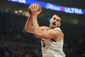 24直播网讯 NBA杯小组赛,掘金客场109-107惜败开拓者。巨星约基奇虽空砍21分14篮板9助攻,距三双仅一步之遥,末节高难度绝平球不中,错失开季连续四场三双纪录。