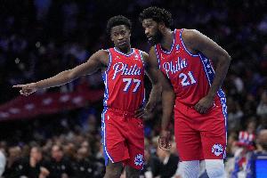 恩比德则在25分钟的时间里,投篮14中6,三分球3中1,罚球7中7,拿到20分6篮板4助攻2盖帽的数据。