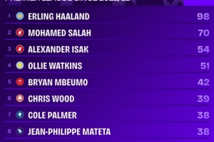 体育资讯11月3日讯 英超第10轮比赛,哈兰德梅开二度,帮助曼城主场3-1击败伯恩茅斯。Squawka统计了22-23赛季以来球员在英超的进球数量,哈兰德98球断层居首。