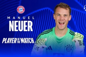 24直播网讯 拜仁欧冠客场2-1战胜巴黎,下半场少一人作战。门将诺伊尔表现神勇,8次扑救力保球门不失,还成功18次长传,获评8.2分全场最高,并当选欧冠官方全场最佳。