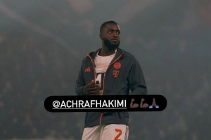 24直播网讯 欧冠拜仁2-1客胜巴黎。迪亚斯铲人染红,阿什拉夫受伤离场。队友于帕梅卡诺被指嘲讽对手,引发争议。他随后社媒回应,称“不要无事生非”,并祝愿阿什拉夫早日康复。