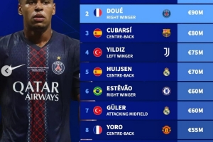 24直播网讯 杜埃荣膺2025年金童奖。德转同时发布U20球员身价榜,亚马尔以2亿欧居首,杜埃(9000万欧)、库巴西(8000万欧)分列二、三位。前十名还包括伊尔迪兹、赫伊森等年轻才俊。