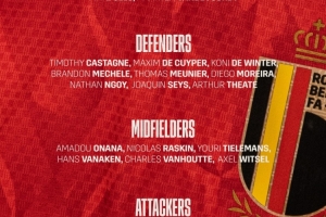 24直播网讯 比利时国家队公布新一期大名单,备战国际比赛日。库尔图瓦领衔,多库、特罗萨德、奥蓬达等入选,德布劳内因伤缺阵。名单包含门将4人,后卫9人,中场6人及前锋7人。
