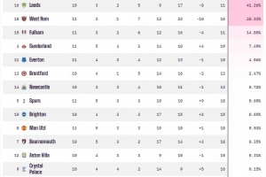 24直播网讯 英超升班马命运迥异。狼队战绩惨淡,降级概率高达90.31%;伯恩利和利兹联概率均超40%。而同为升班马的桑德兰表现惊艳,高居第4,降级概率仅7.49%。