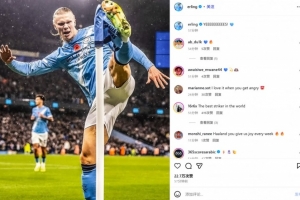 失点后头槌破门!哈兰德社媒晒飞踢角旗杆庆祝照:YES