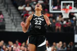 24直播网讯 WNBA季后赛半决赛G1,拉斯维加斯王牌主场73-89不敌印第安纳狂热,大比分0-1落后。王牌核心阿贾·威尔逊,刚获常规赛第4座MVP,本场仅得16分,状态低迷。狂热则靠凯尔西·米切尔34分的出色发挥取胜。