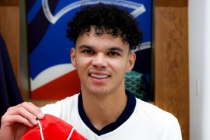 奥赖利上演英格兰队首秀,赛后斯通斯为他颁发纪念帽子