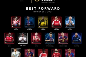 体育资讯11月19日讯 环球足球奖公布了2025年最佳前锋候选,姆巴佩、哈兰德、登贝莱、亚马尔在列。
